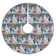 Tuxedo Cat Running in Snow with Christmas Hat Brushed Polyester Tree Skirt