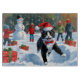 Tuxedo Cat Running in Snow with Christmas Hat Cutting Board
