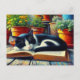 Tuxedo Cat Sleeping on a Book Garden Painting Postcard