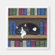 Tuxedo Cat Sleeping on Bookshelf Cat Art Magnet