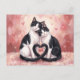 Romantic cat-themed Valentine's day design featuring two black and white cats with intertwined tails forming a heart.