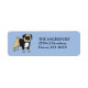 This fun return address label shows a cute image of a little brown pug wearing a tuxedo jacket. The image is placed on a grey blue background. Your text is in black at the right of the image. *Design credit for the image to Winchester Lambourne on etsy.com.