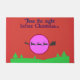 Twas the Night before Christmas - below these words is Santa's sleigh and reindeer. 3 of the reindeer are encircled to give it the appearance of Santa's sleigh passing a full moon. The Circle has a red outlined border with the inside of the circle pink/light purple colour. On the bottom of the design is green landscape with green trees. The design has a red background. Perfect Christmas colours are red and green. The words are navy colour.