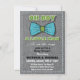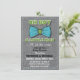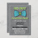 Super mignon tissu inspiré, tweed petite homme invitation douche bébé avec bleu tweed bow cravate et la typographie amusante avec des polices tweed vert. Arrière - plan de tweets gris avec couture. Illustration tirée à la main par McBooboo.
