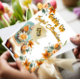 High quality, beautifully presented. The scalloped edge is a nice touch. Choosing a post card style birthday greeting adds a nice twist from the traditional folded card. Colours are soft pastel shades that gives a simple elegant look for this card. The high definition print option with semi gloss really works well for this card. Note: my photo may not capture the prettiness of this card. The reverse of the card highlights the image I chose for a pet themed card nicely. Just what I expected. 👍