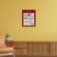 Each individual square of this red grid pattern poster print contains a colourful watercolor representation of each of the twelve days of Christmas with each day’s number in the upper left corner. The phrase “My true love gave to me” in white at the top completes the design. From my original digitally created image.