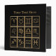A graphic design of the twelve zodiac signs by artist/designer Charmaine Paulson on on a black Avery Binder. Original Artwork: Copyright Charmaine Paulson The binder has text templates for your personalization.