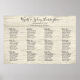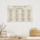 Barn wood look background, seating chart poster for seating up to twelve tables, with eight (or fewer) guests at each.  This 23 x 36 inch seating chart has black text in both script, for up to 12 table numbers, and printed text for guests' names.  Married names at top in elegant and modern, hand-written font with one or two lines for date and location of celebration  Tables are listed horizontally, but that is easy to change by changing the numbers using the templates.  For fewer tables, simply delete sections as needed, keeping the look symmetrical.  Upgrade the paper if you wish.