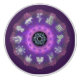 Symbols of the Twelve Tribes of Israel: Reuben, Simeon, Levi, Judah, Dan, Naphtali, Gad, Asher, Issachar, Zebulon, Joseph and Benjamin. The tribal symbols are arranged on a circular fractal image of purple tones.