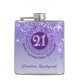 Twenty First & Purple Glitter & Drinking Quote Hip Flask