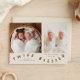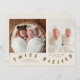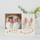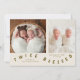 Whimsical birth announcement card featuring typography text that says "twice blessed" at the bottom with two photos on the front. You can add a 3rd picture on the back along with the birth stats and message. The background is cream.