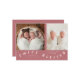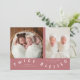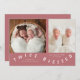 Whimsical birth announcement card featuring typography text that says "twice blessed" at the bottom with two photos on the front. You can add a 3rd picture on the back along with the birth stats and message. The background is pink.