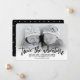 This modern twin birth announcement features "twice the adventure" in bold script over your twin babies' full bleed photo. Customize it to change the backer colour to match your photo!