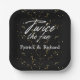 Twice the Joy, Twice the Fun: Introduce your joint birthday party with our elegant "Twice the Fun" paper plates. The design boasts a black background with glittering golden confetti, and the title in a stylish script font. Names are elegantly presented in a modern serif font below. Fully customizable, these plates are perfect for friends and families planning an extraordinary celebration. Make your event unforgettable—customize and order your plates today!