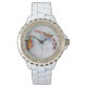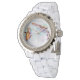 Lovely tones of lavender and aqua from Janet Weight Reed's watercolor "Twilight Dancers" adorn this sporty yet elegant watch. A perfect accessory to add a splash of colour to your outfit.