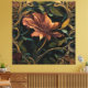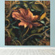 A majestic flower blooms in earthy tones, surrounded by winding foliage that seems to dance in the shadows. The artwork conveys the life force of nature, blending delicacy and intensity in a timeless visual spectacle of beauty.