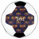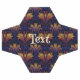 The product features a repeating ornate pattern inspired by a classic, baroque-style design. The central motif resembles a stylized fleur-de-lis or an elegant plume, rendered in vibrant gold, red, and orange hues with gradient effects. The background is a deep navy blue, creating a rich contrast that makes the design elements pop. The pattern has a luxurious and regal feel, with symmetrical detailing and flowing curves that give it a sophisticated and timeless appearance.