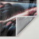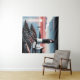 The tapestry depicts a striking lighthouse standing as a twilight sentinel over tranquil ocean waters. As the sun sets, it casts a radiant backdrop of red and pink hues across the sky, mirrored by the sea's glassy surface. The graphic illustration style lends a crisp and clean look, with the lighthouse's iconic stripes providing a visual anchor in the composition. Seabirds in flight add a sense of freedom and grace to the scene, while the coastal home nestled beside the lighthouse offers a glimpse of life at the shore. This artwork is a harmonious blend of nautical charm and graphic precision, ideal for those drawn to the romance of maritime settings and the calm of dusk by the sea.