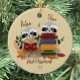 Un premier joli ornement de Noël pour vos bébés jumeaux avec deux petits ratons laveurs à l'avant et un motif à feuilles à l'arrière. Personnalisez ce gardien avec le nom de vos enfants et l'année. © ArianeC Illustrations-Tous droits réservés