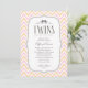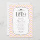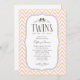 Twin baby shower invitations with a light pink and orange chevron stripe design. Customize the wording with your shower information. Preview what the finished invite will look like on screen before you order.