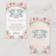 Twin Boy Girl Elephant Pink Floral Tea Bring Books Enclosure Card