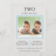 Simply beautiful the perfect Twin Baby Announcement to send to all your friends and family announcing the birth of your child. Featuring a photo on the front with a baby blue frame & ivory background with all the baby information.