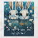 Super cute pair of bunnies sitting in a flower field with white flowers.