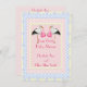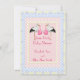 Pretty in pink, this invitation will delight its recipients to a twin baby girl shower. Little baby girls, held by storks surrounded and framed in pink and blue polka dots.