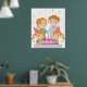 Twin girls and their parents having a birthday. This design looks really effective on these Poster