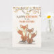 These two brown and white foxes are the ones you need to wish your Twin Sister a very Happy Birthday. This card with a background full of colourful leaves and branches will be a very nice surprise.