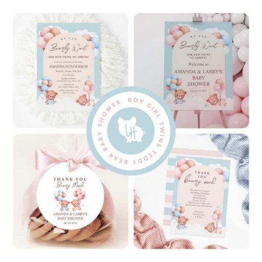 Boy Girl Twins Teddy Bear Baby ShowerDesigned by Amanda Cudnik