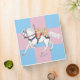 A white carousel horse carries twin teddy bears across a pink and light blue chequered background. Says Baby Book on the side in same colours. Illustration. Perfect for a scrapbook or photo album, baby shower gift for either girl or boy or twins