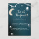 Book Request form that matches the twinkle, twinkle little star baby shower invitation. Moon and stars with a white silvery ribbon decorate the nighttime blue background on this adorable Book Request card. The poem wording reads: