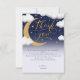 This is an adorable first birthday thank you card based on the “Twinkle twinkle little star” nursery rhyme. The design features a cute handwritten script calligraphy font, a golden moon with gold stars and cute fluffy clouds in a twinkling starry night sky.
