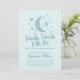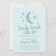 Sweet baby shower invitation for your star theme party. There is a shape of moon and stars in mint faux foil. The text says "Twinkle Twinkle Little Star what a little miracle you are!" and the baby shower information follows. The texts are easily customizable online.