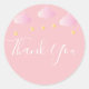 Twinkle sprinkle little star baby shower pink thank you, classic round sticker. Designed to coordinate with our Twinkle sprinkle baby shower collection. Featuring cute pink clouds and golden stars on strings, on a soft pink background, these baby sprinkle stickers are perfect for sealing envelopes and baby shower favours.