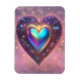 A colourful heart shape with twinkle lights in a cosmic starry sky.