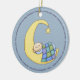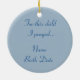 This precious ornament celebrates the joy of your first child. The front of the ornament has the words to Twinkle Twinkle going around the edge. A whimsical baby boy is sleeping on the moon. The other side of the ornament says "For this child I prayed" and a place for you to personalize it with the baby's name and the year. Beautiful as a Christmas ornament, but also an exciting way to announce that you're pregnant to the family. Or just a special ornament to hang in the nursery!