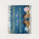 Twinkle twinkle little star baby shower backdrop with adorable ethnic baby boy and girl wearing cute pink and blue outfits on a beautiful blue cloud and star background. This cute twinkle twinkle little star baby shower banner is easily customized with the text of your choice.
