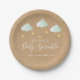 Featuring cute mint green clouds and golden stars on strings, on a rustic kraft boho background, this gender neutral baby shower, sprinkle or couples shower paper plate is perfect for all little ones who are on their way.