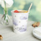 This cute "twinkle twinkle little star" gender-neutral baby shower paper cup features a white background with fluffy lavender purple clouds and faux gold stars. Personalize for your needs. You can find matching products at my store.