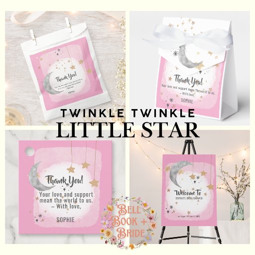 Add a touch of dreamy elegance to your table with these Twinkle Twinkle Little Star Baby Shower Paper Napkins, designed especially for a baby girl celebration. Featuring a soft blush pink watercolor background, hand-drawn moon, and shimmering stars, these napkins are the perfect blend of style and function. Ideal for serving drinks, desserts, or light bites, and they beautifully coordinate with your full celestial-themed shower decor.