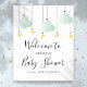 Avec de mignons nuages vert menthe et des étoiles dorées sur cordes, ce signe de bienvenue est parfait pour un baby shower spécial. Conçu par Thisisnotme©