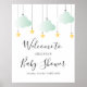 Featuring cute mint green clouds and golden stars on strings, this welcome sign is perfect for a special baby shower. Designed by Thisisnotme©