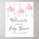 Avec de mignons nuages roses et des étoiles d'or sur des cordes, ce signe de bienvenue est parfait pour un baby shower spécial. Conçu par Thisisnotme©