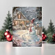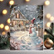 Twinkling Cozy Christmas Cottage with Snowman Card