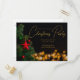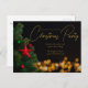 This gorgeous holiday party invitation postcard features modern gold script over twinkling lights next to a festive Christmas tree that is decorated with red and green ornaments. Customize these elegant postcards for your annual family Christmas gathering.