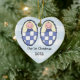 This adorable, whimsical- Christmas ornament makes a wonderful gift for new parents of twin boys "Our 1st Christmas". Each baby is inside a bassinet or cradle covered in a blue and white chequered blanket. The background is blue plaid or gingham. Very cute! Personalize the back of this product with names,dates and birthplace or other text. NOTE: WHEN CHANGING SIZE OR SHAPE OF PRODUCTS-PLEASE ADJUST IMAGES AND TEXT TO FIT. ALL TEXT MUST REMAIN INSIDE RED DOTTED LINE. To see more wonderful products- Please visit my store "The Hungarican Princess" at www.zazzle.com/hungaricanprincess*. This ornament for twins and single (boy and girl) are available in my "Oh Baby" catagory.