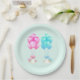 Creative girl and boy twins baby shower plates, featuring blue and pink balloons.