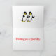 Teddy bears waving, twins birthday customizable card. Shown with 1st Birthday, change age add names, front, and add message and your name(s)inside. This version has twin penguins inside. White pink and blue backgrounds available, or change to colour of your choice.